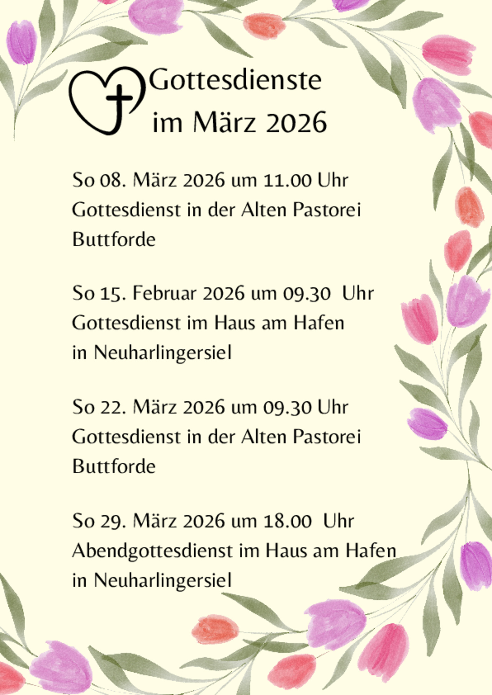 Am 29. März gibt es einen Abendgottesdienst in Neuharlingersiel